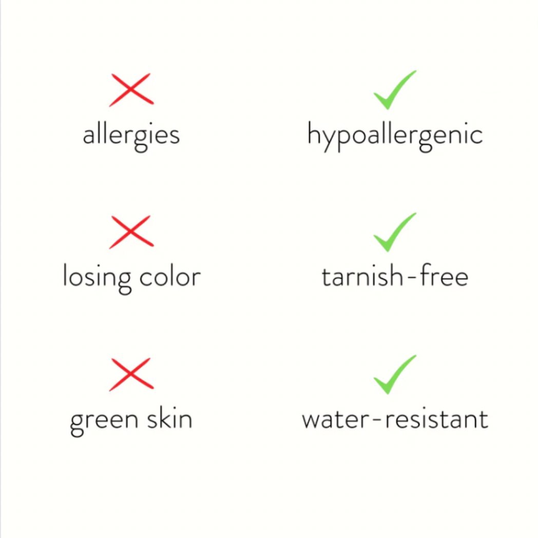 Made from waterproof stainless steel, you'll never have to worry about jewellery discolouring or tarnishing again!