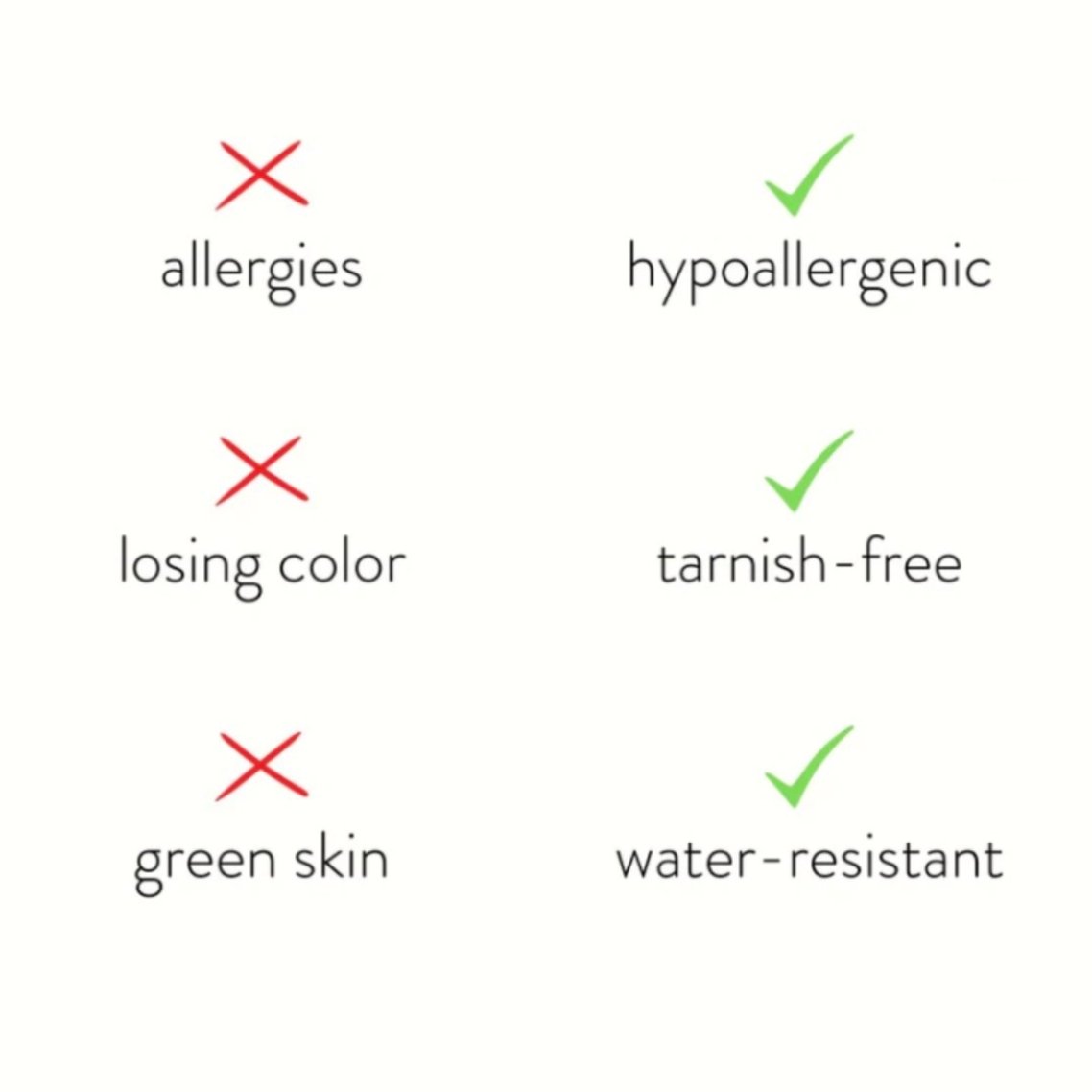 • Hypoallergenic, lead-free, and nickel-free