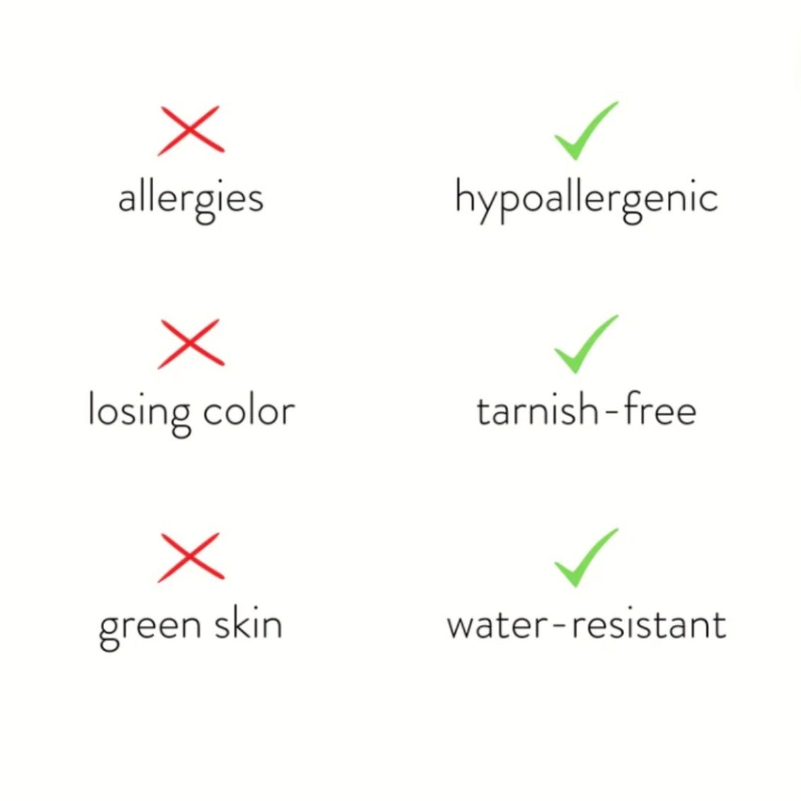 - Water-resistant and tarnish-proof